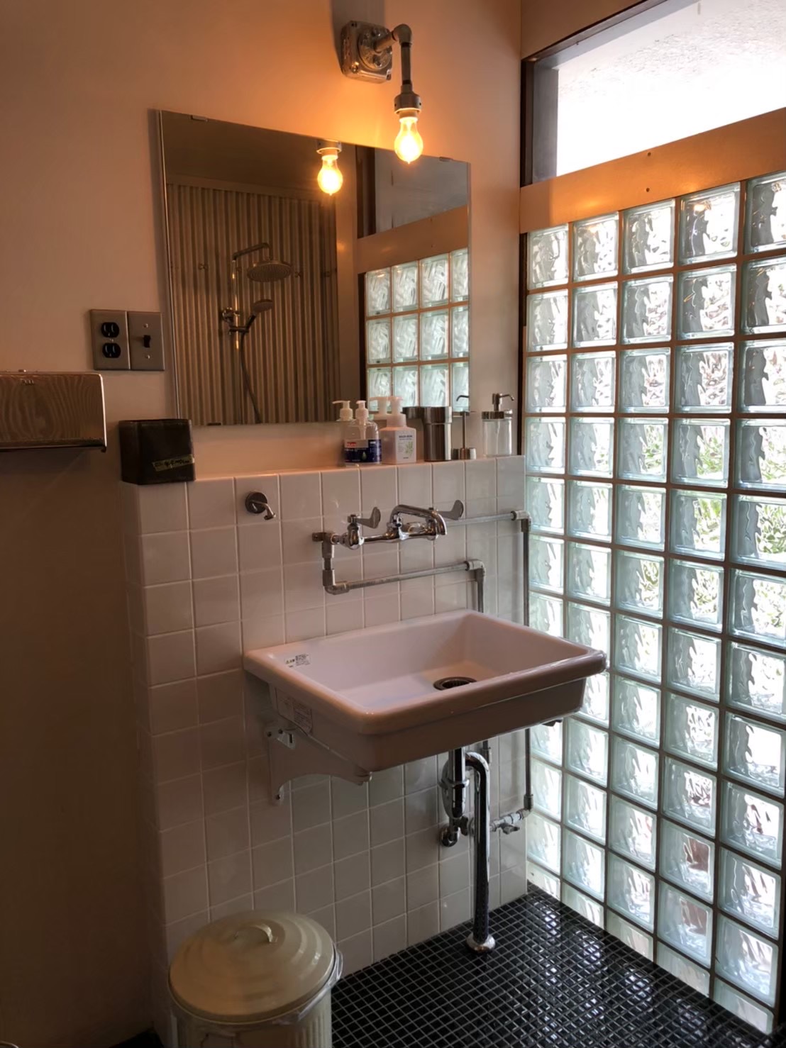 ブルックリンスタイルのトイレでは、モルタルやタイルの本物素材がよく使われます。ナカミチホームの実例でも、トイレの目隠し壁や床にタイル仕上げを採用し、耐水性と掃除のしやすさを両立。タイル特有のマットな質感はヴィンテージ感を演出しつつ、汚れが染み込みにくく、家族が使う空間として衛生的です。